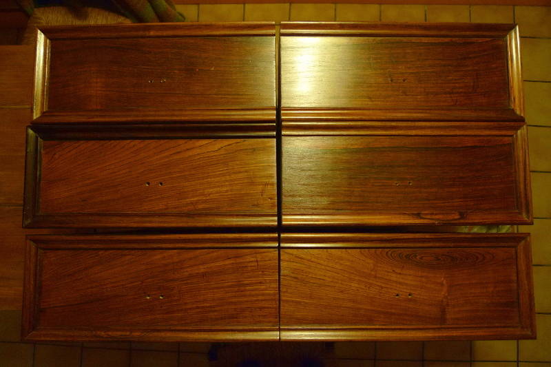 Tiroirs en plaquage de palissandre sur hêtre et chêne massif,