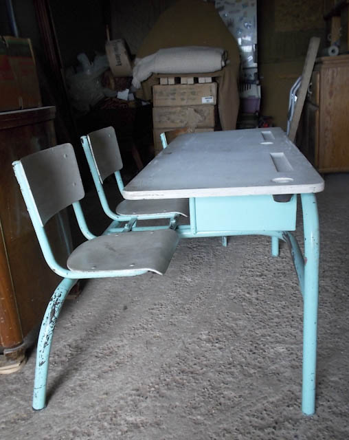 Un bureau, une petite chaise d’école atterrissent dans mon atelier. Le temps passe.